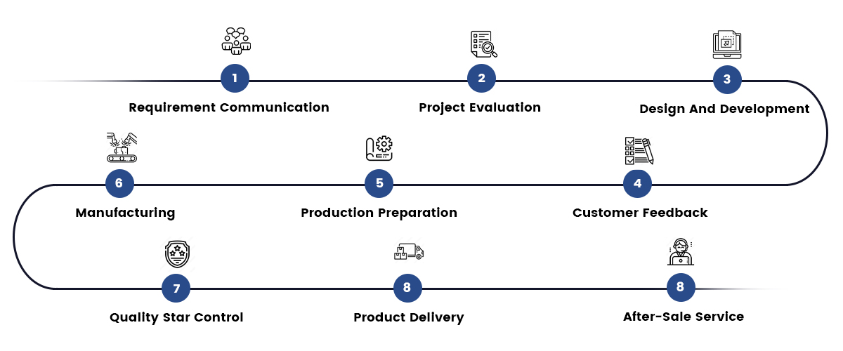 Pasukan reka bentuk profesional melaksanakan reka bentuk konseptual dan terperinci berdasarkan keperluan pelanggan, serta mampu bertindak balas dengan pantas terhadap perubahan reka bentuk mengikut pasaran dan permintaan pelanggan.